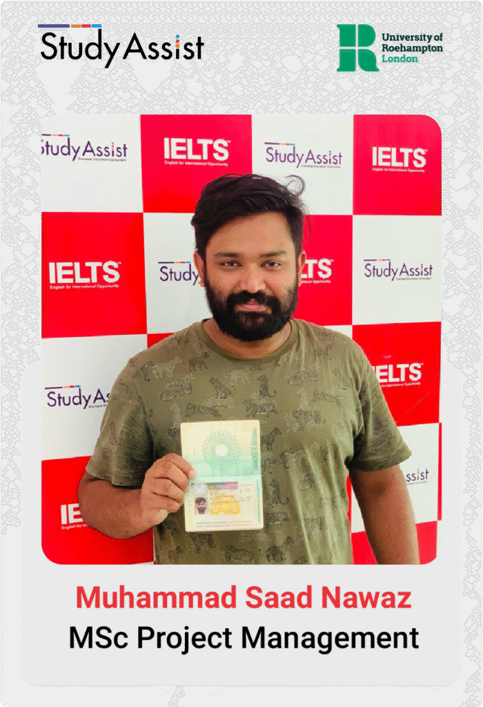 It is due to Study Assist that I got my UK visa for MSc Project Management at UWS. I didn’t face any issues thanks to Study Assist and their team. Special thanks to Sir Assad and Sir Baber. I strongly recommend you all to visit there once.